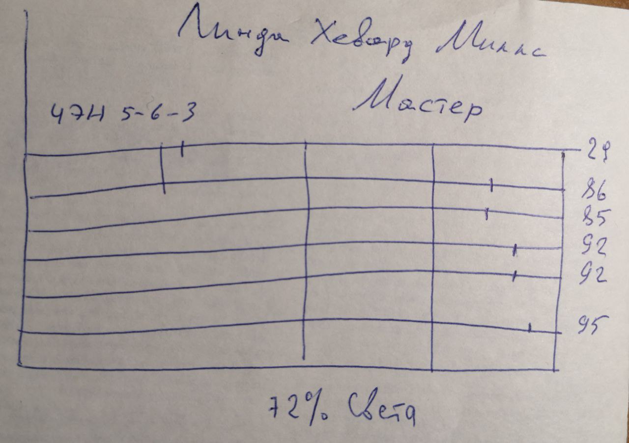 по участнице Линда (см выше) Линда Ховард Миллс. Появилась на горизонте снова и меня попросили сделать свежую диагностику прислав свежее фото (выше). Во время БЭ21 я делал диагностику всем участникам Битвы. Её диагностика из 2021: Новая - можете сравнить. Изменения есть, особенно по балансу Свет-Тьма и лестнице Якова - была Учитель, стала - Мастер. ЧЭН ныне 5-6-3 Перспективы обнадеживающие